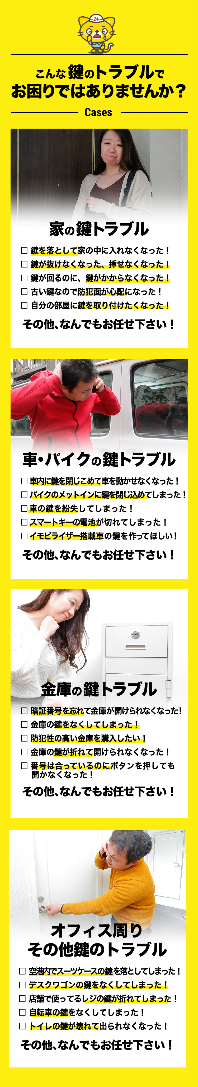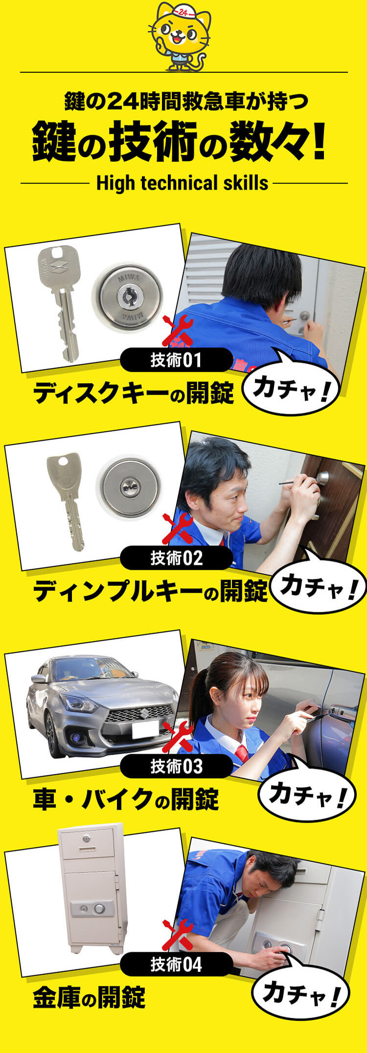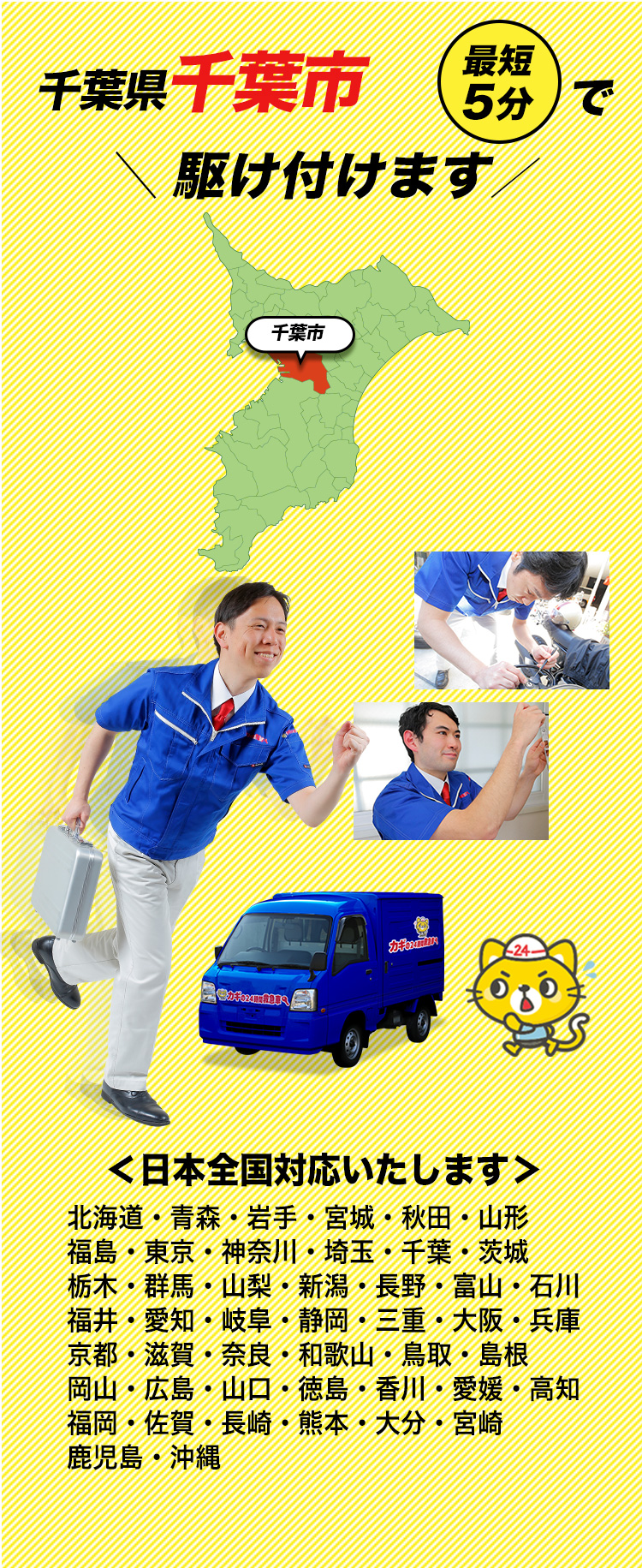 千葉の「カギの出張24時間」は、幕張や船橋エリアで鍵の迅速対応を約束。千葉の海風を感じながら、お客様が抱える鍵の問題を素早く解決します。地域住民から信頼されるサービスで、安心の鍵作業を提供いたします。